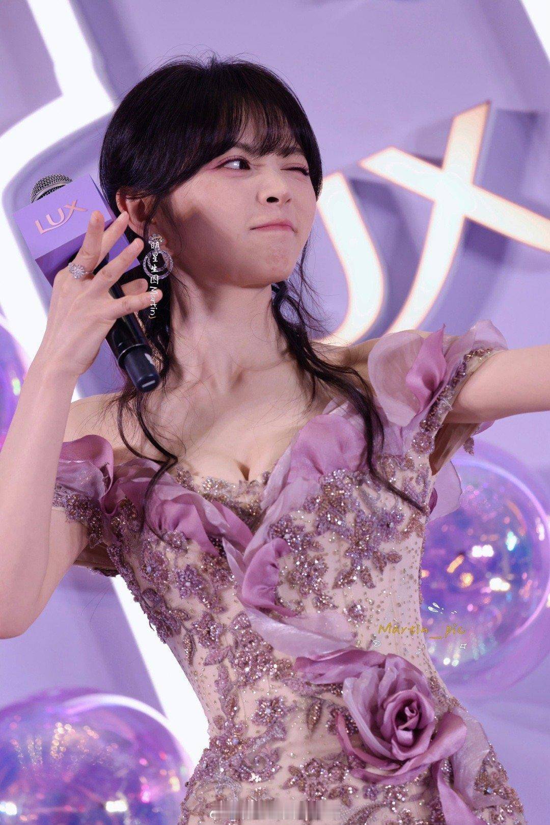 抛开争议不谈,田曦薇的饱满身材恰恰契合了当下时尚圈的多元审美趋势。曾经“以瘦为美”的单一标准逐渐被打破,兼具健康感与曲线美的体态更受青睐。这款紫玫瑰主题礼服之所以能成为记忆点,正是因为她的身材赋予了裙装灵魂:落肩设计衬得肩颈线条干净利落,鱼尾裙摆随步态飞扬时,饱满的臀部线条让造型更具张力,冷白皮与冷调紫的碰撞更凸显肌肤光泽,将“甜妹”与“御姐”的反差感拉满。时尚评论人指出,真正的时尚并非复刻统一模板,而是让穿搭与个人特质相得益彰,田曦薇的造型正是做到了这一点。