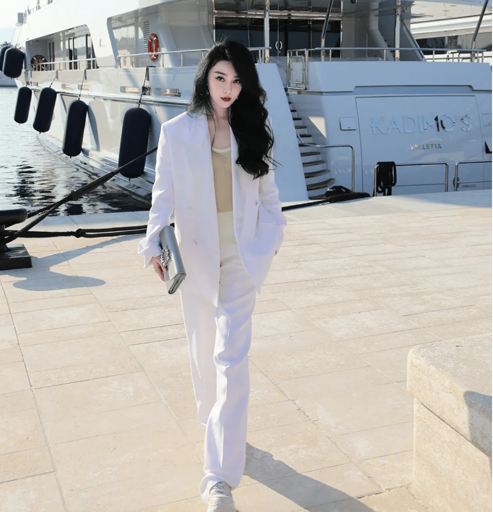 43岁范冰冰国外参加游艇派对彻底放飞,穿西装配半透纱衣女人味爆棚