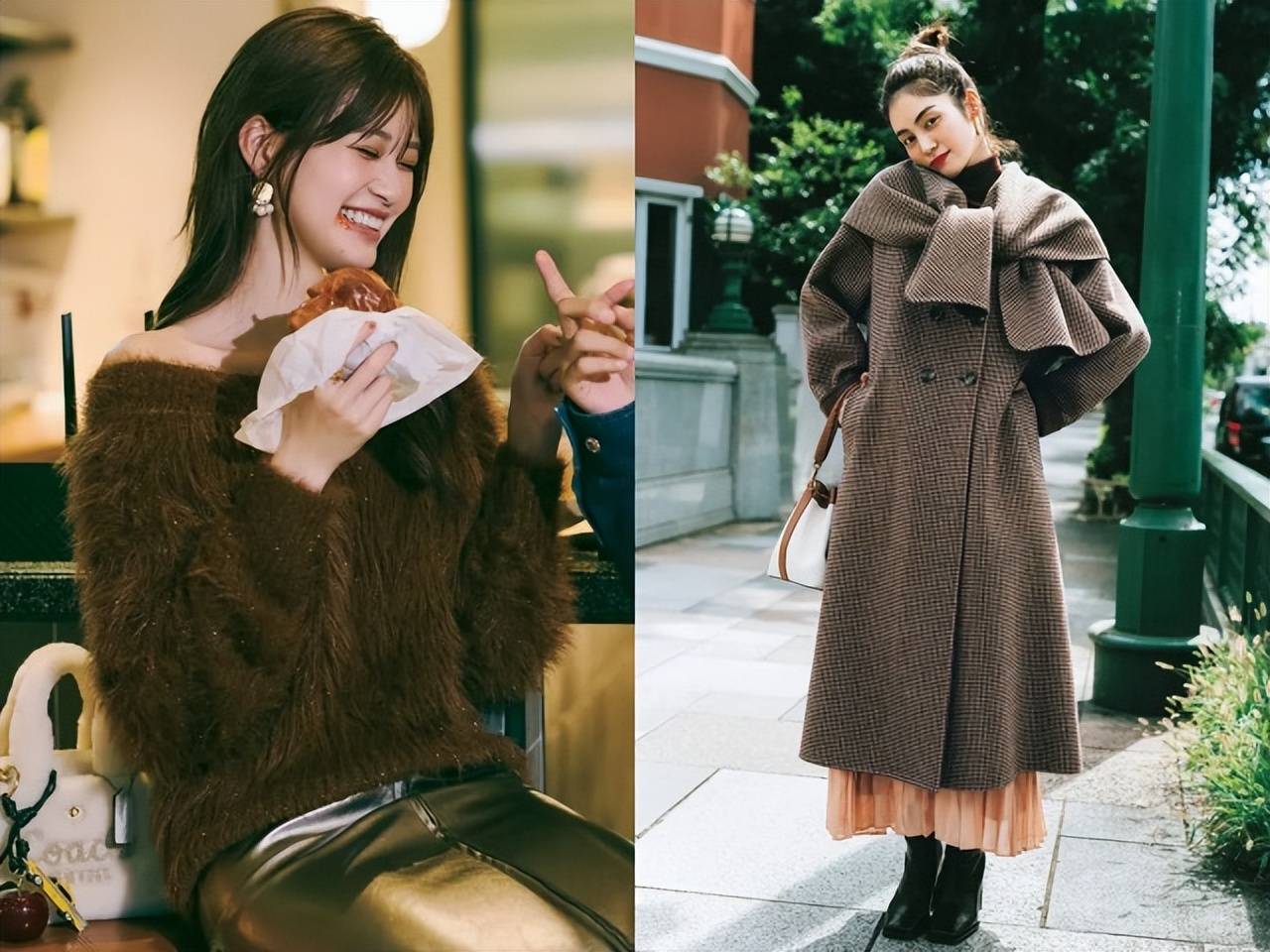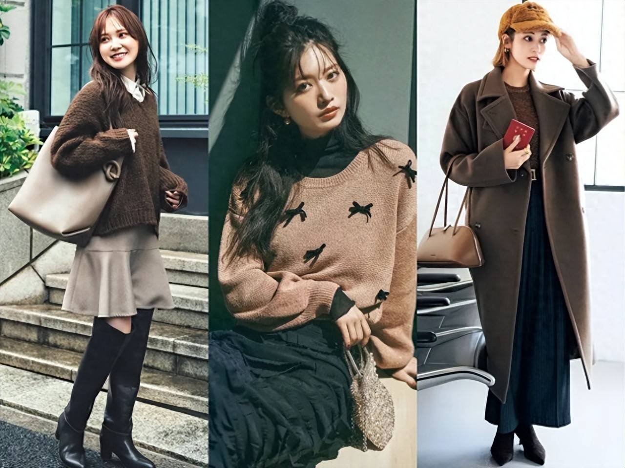 这次主要介绍怕老气的棕色针织衫如何穿出“氧气”感?