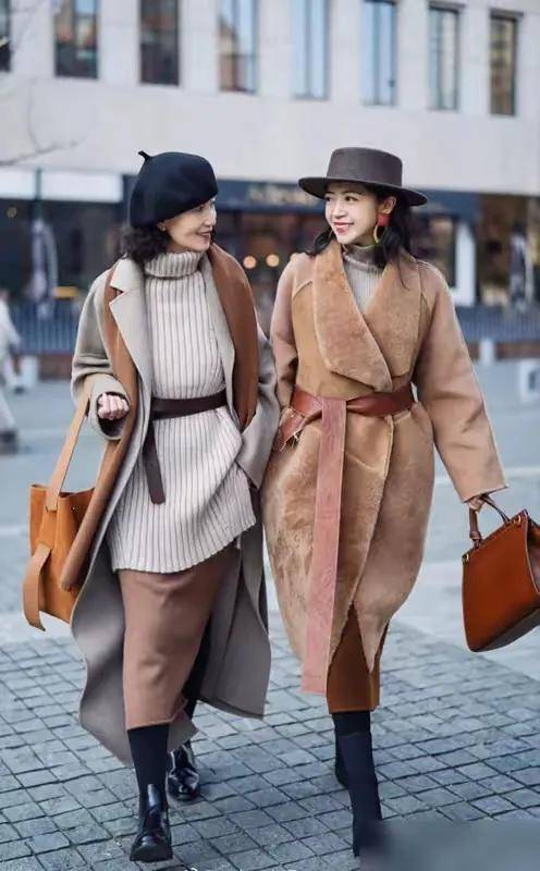 当然,焦糖色的衣服也有浅有深,主要还是看自己喜欢什么样的,如果你选择的是浅色系的焦糖色大衣,大配上毛衣和半身裙,这个时候你可以用深一点的教堂色包包或者是包带来点缀,这样你的穿衣造型配色才有层次感,不会过于单调。