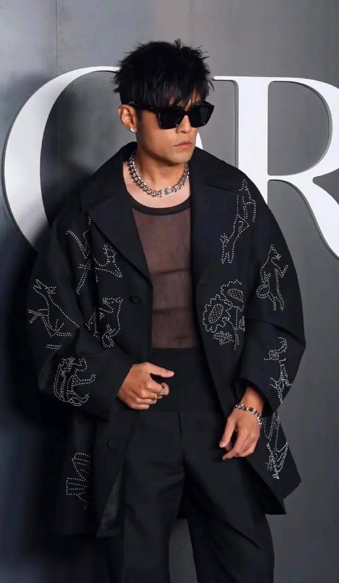 颜值回春的周天王,又找回了当初那股霸气不羁的感觉,里面的黑色透视内搭既大胆又别出心裁。