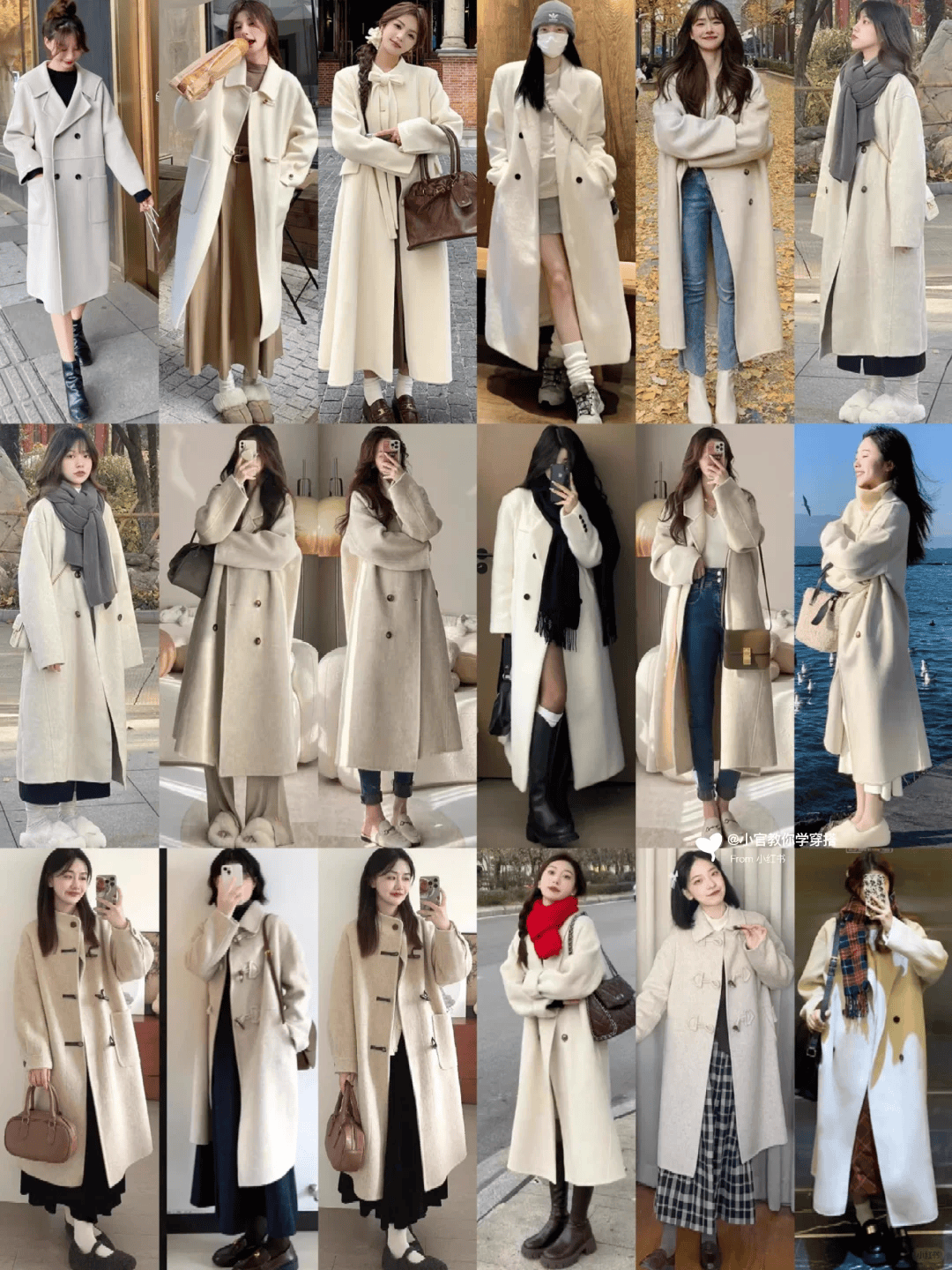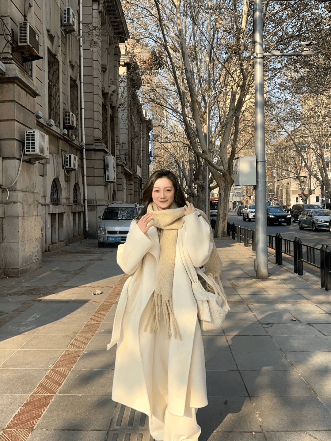 浅色系的大衣,如同春日里的一缕清风,温柔而不失力量,它们以柔和的色彩,轻易地勾勒出女性的温婉与恬静。白色、杏色、卡其色以及燕麦色等低饱和度的色调,如同自然界中的初绽花朵,既不张扬,也不低调,恰到好处地展现出35+女性的内敛与自信。
