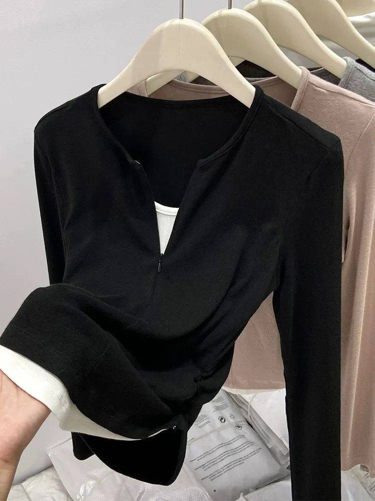 百草君在前几期给大家推荐了纯色的打底衫,有姐妹反馈家里纯色的打底衫已经有好多件了,能不能推荐一些有设计感的款式。